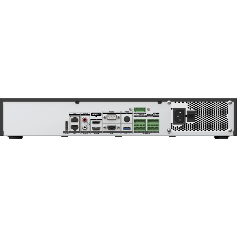 Für die Datenspeicherung stehen vier SATA-Schnittstellen zur Verfügung, die jeweils Festplatten mit bis zu 20 TB Kapazität unterstützen und somit enorme Archivvolumen ermöglichen. Mit 16 Alarmeingängen und 9 Alarmausgängen lässt sich der Rekorder nahtlos in komplexe Sicherheitsinfrastrukturen integrieren und vielfältig mit weiteren Sicherheitssystemen verknüpfen.