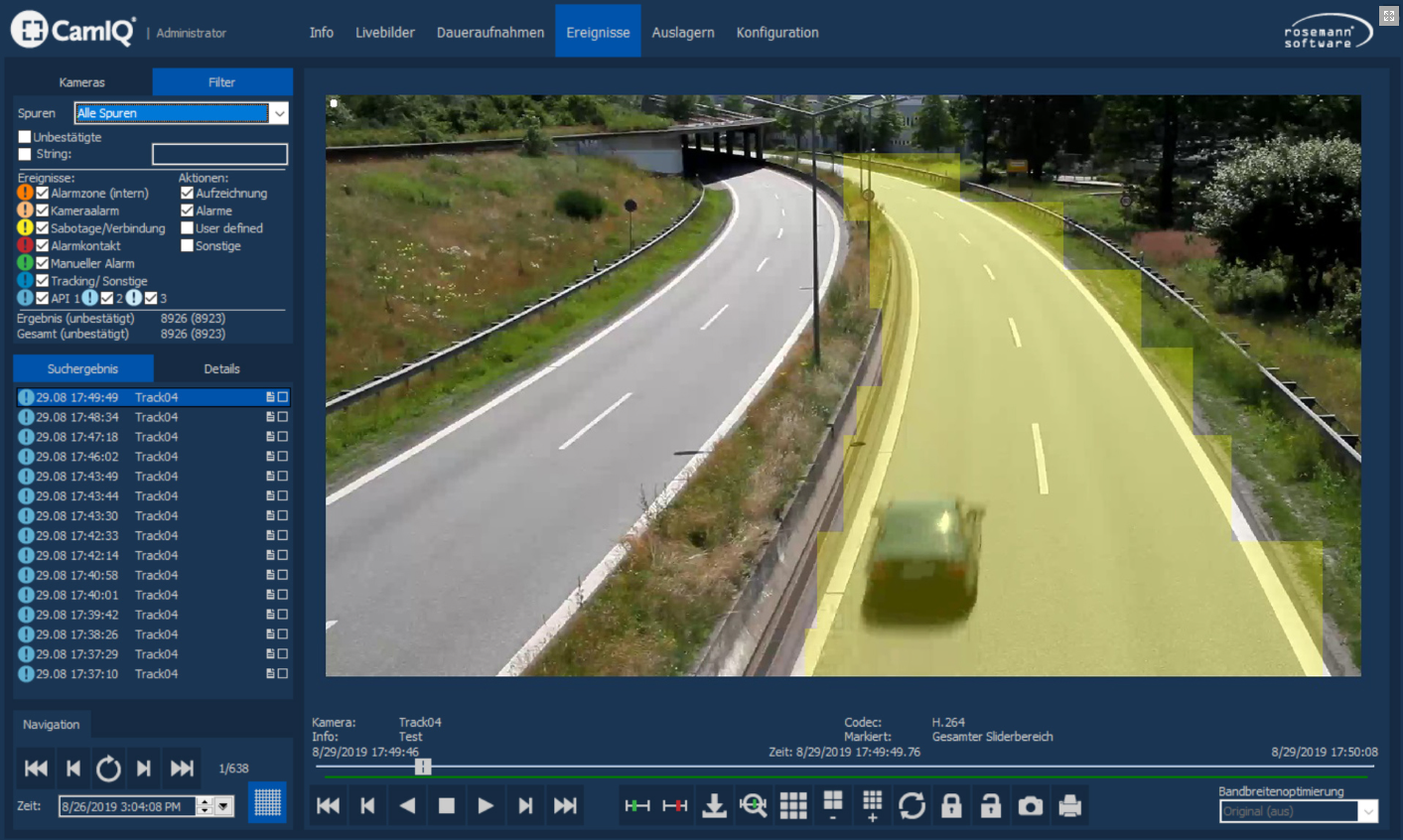 Bedienung der Auswertesoftware durch Advanced H.264 CamIQ Multi-Streaming (bzw.