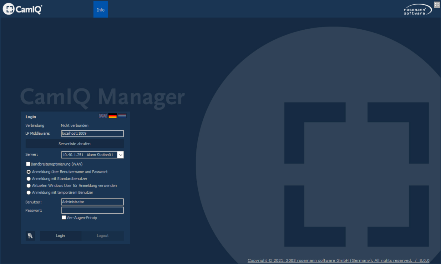 In der neuesten Version können jetzt bis zu 256 Kameras (4x64) pro Server (PC) genutzt werden. Mit dem enthaltenen Standard Client können alle Funktionen einer CamIQ Instanz genutzt werden. Optional steht der CamIQ Enterprise Client für Installationen mit mehreren CamIQ Server Instanzen zur Verfügung.