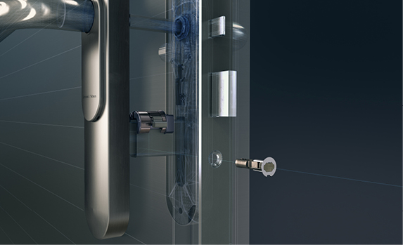 The SmartHandle can be equipped with wireless online technology or with the VCN Network. The system enables centralised management and offers a flexible solution that is particularly advantageous in dynamic environments such as offices and public facilities.